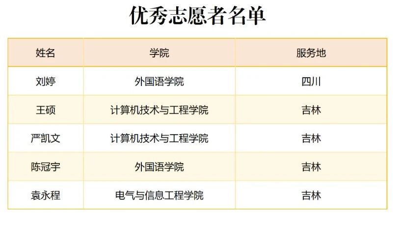 为深入学习贯彻习近平总书记在同团中央新一届领导班子成员集体谈话时的重要讲话精神和给谢依特小学戍边支教西部计划志愿者服务队队员回信精神,近日,全国大学生志愿服务西部计划项目管理办公室正式发布《关于印发2024—2025年度大学生志愿服务西部计划考核等次优秀志愿者名单的通知》。经各省级项目办推选、审核及公示,长春工程学院刘婷等5名志愿者,扎根西部基层、深耕服务岗位,以精益求精的工作态度、甘于奉献的责任担当和亮眼突出的服务实绩,荣获考核优秀等次,用青春行动为长工程学子树立了榜样标杆。